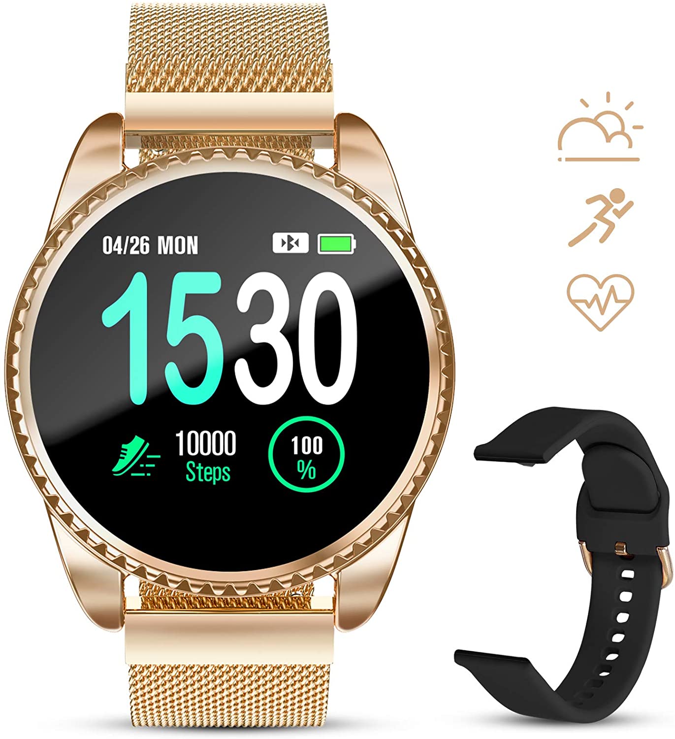 | Supported Application | Fitness Tracker, Weather, Sleep Monitor, Messages, Phone, Alarm, GPS, Pedometer, Camera, Heart Rate MonitorSee more |