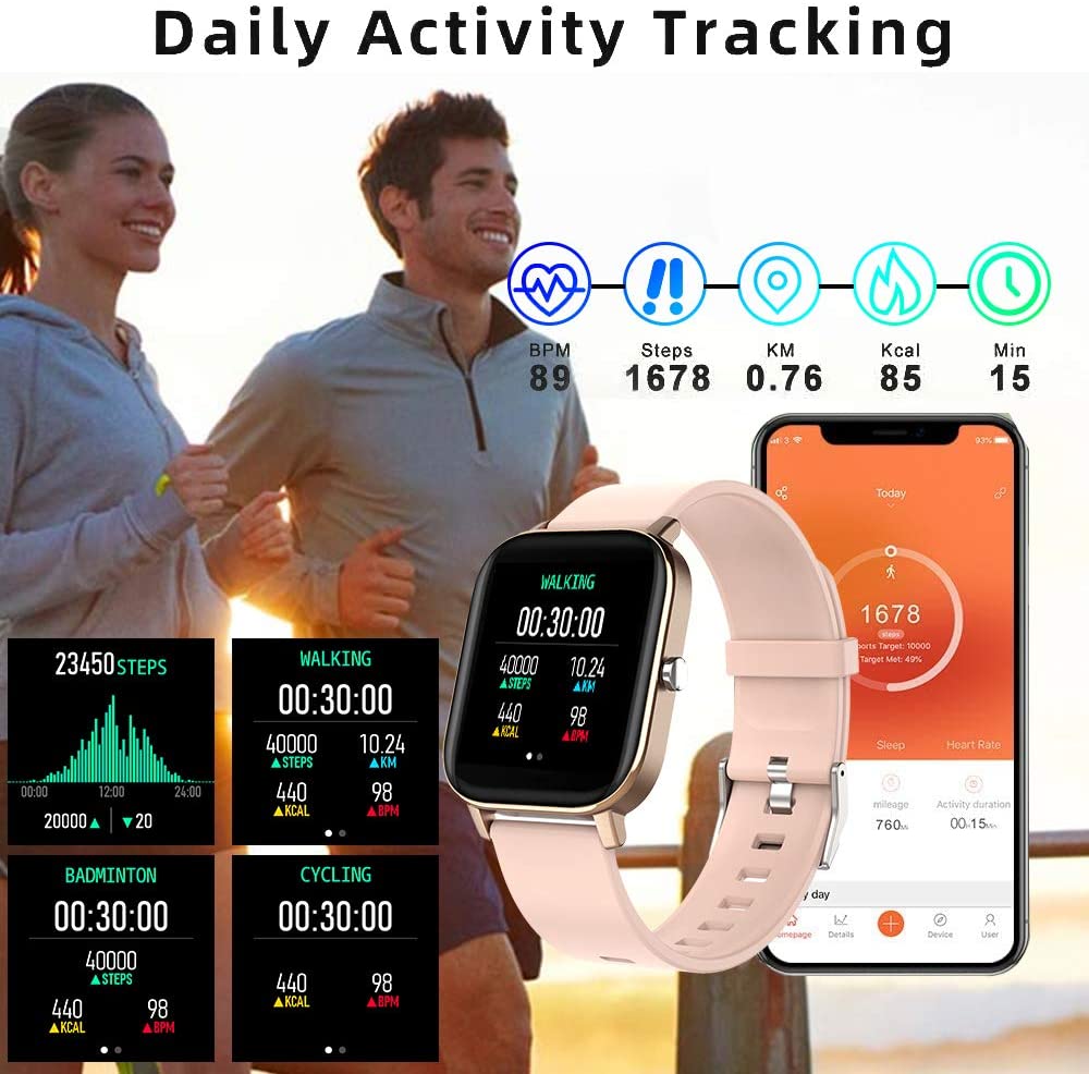 Smart Watch, FirYawee Smartwatch for Android Phones and iOS Phones,Fitness Tracker Waterproof IP68 with Heart Rate Monitor and Sleep Monitor,Step and Distance Counter,Smart Watch for Men Women